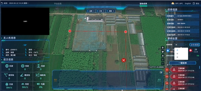 平台以“消防一张图”为核心,集中调度所有无人机设备,打破分散管理壁垒,实现多品牌、多型号无人机及机巢的兼容接入。通过智能调度算法,可根据警情位置、类型自动匹配设备与航线,优先调派距离最近的机巢无人机前往现场,同时支持人工干预调整任务优先级,确保资源高效利用。